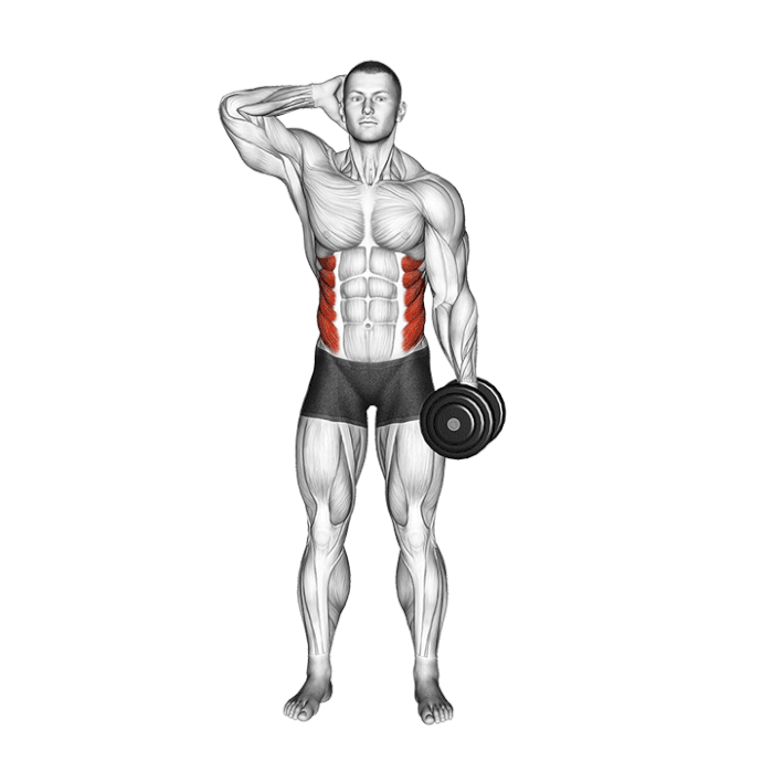 La flexion latérale debout avec haltère est un exercice simple mais efficace pour renforcer les muscles obliques et améliorer la stabilité du tronc.